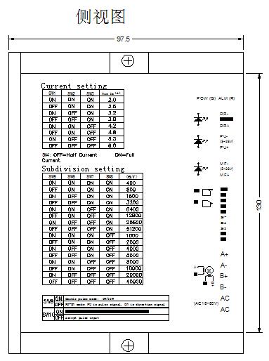 驅動器細分由SW5-SW8端子設定,共16檔,SW9和SW10為功能設定。附表如:細分數(脈沖/轉)